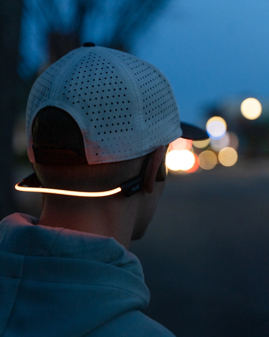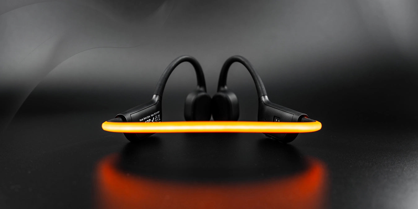 The Bonic Cycle is an open-ear sport headphone with built-in LED visibility, IPX8 waterproofing, and a skin-like silicone fit — designed to keep you heard, safe, and seen on every run.