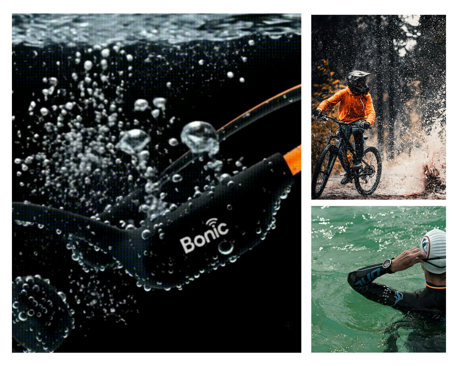 Engineered for extreme conditions, Bonic Cycle’s waterproof design (rated IPX 8) resists rain and sweat, stays secure on rough terrain, and will not slip even while swimming.