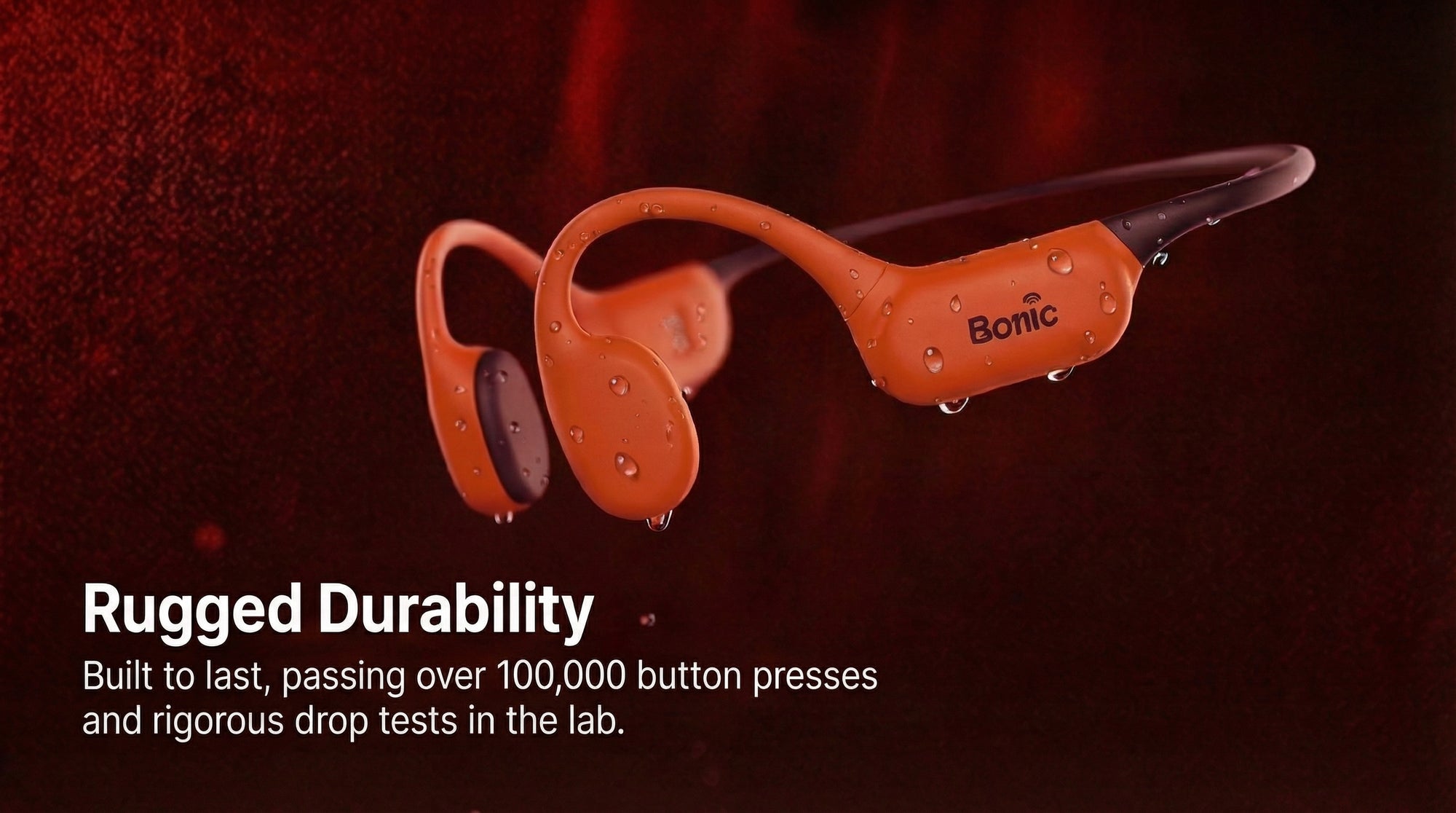 • We have engineered Bonic Fusion with enhanced transducers to maximize audio quality within the constraints of bone conduction. While all bone conduction headphones prioritize safety and awareness over booming bass, our technology delivers clear vocals and rich mid-range audio perfect for podcasts, calls, and energetic music. For the best sound experience, ensure the transducers are resting firmly on your cheekbones, as intended.