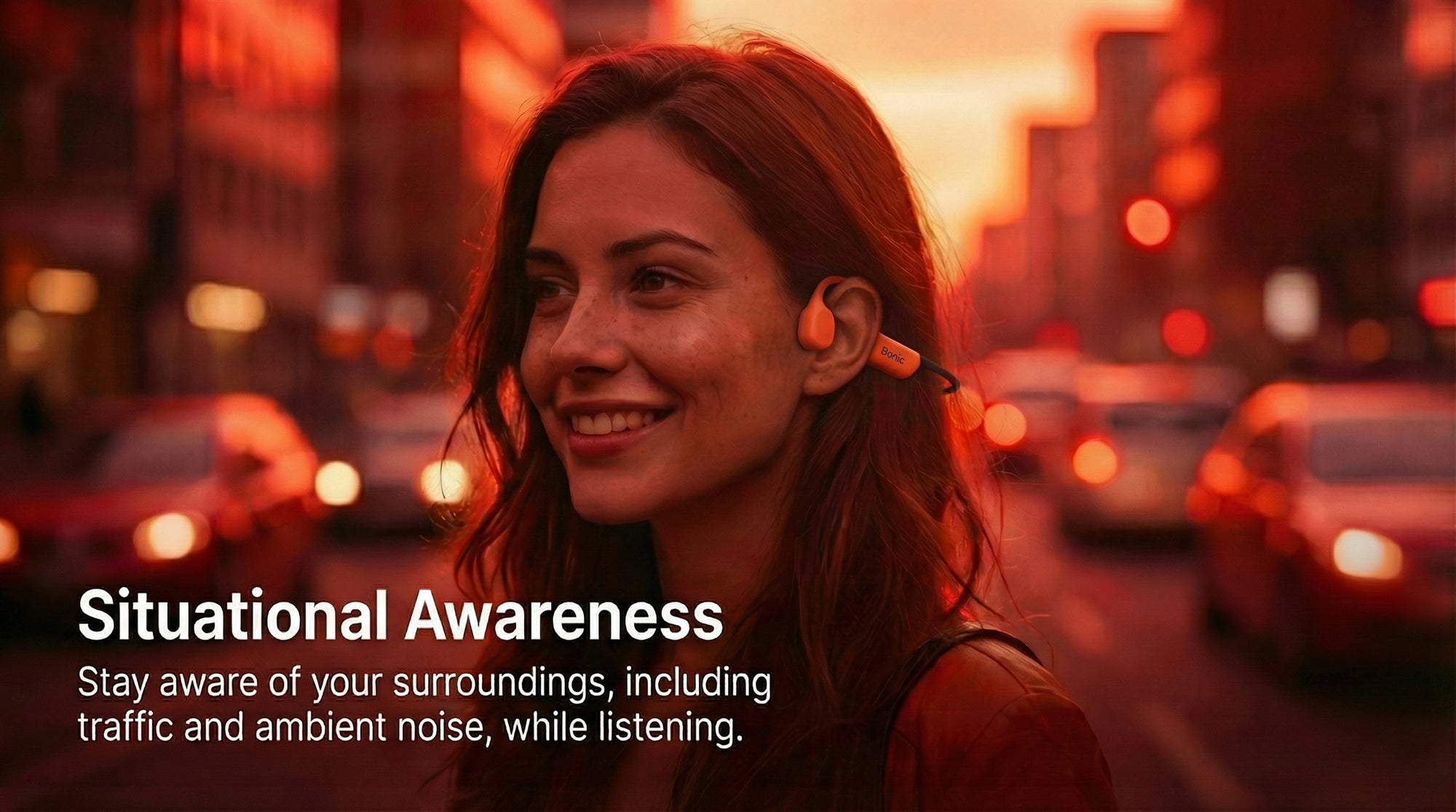 • You should choose Bonic Fusion if you prioritize safety and style equally. Traditional headphones block out your environment, which can be dangerous when cycling, running, or walking in the city. Bonic Fusion offers: