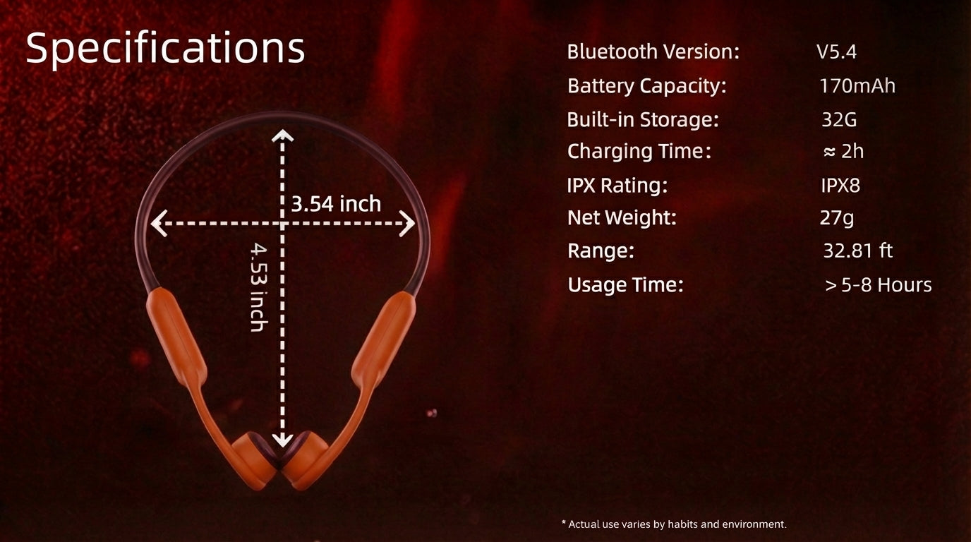 • Open-Ear Bone Conduction – Stream your music while staying fully aware of your surroundings—traffic, trail conditions, and other athletes.