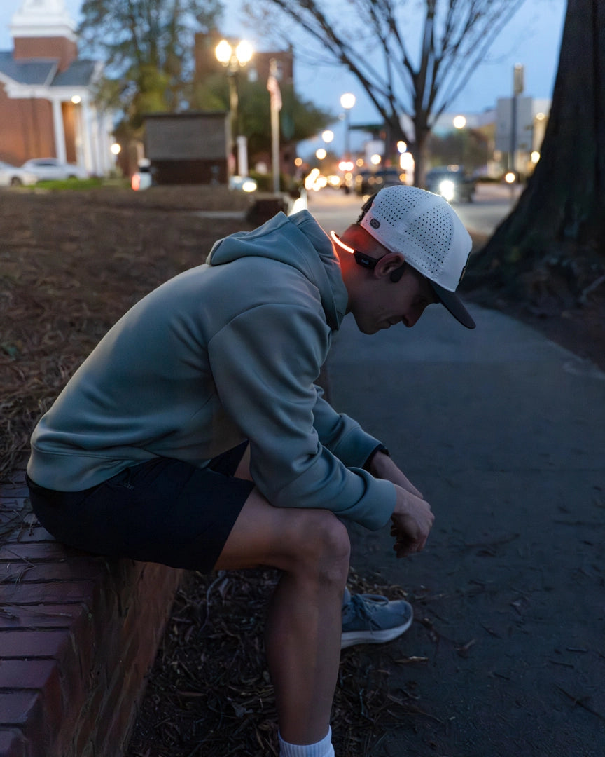 Running alone at 6 AM shouldn't feel like a gamble. Tap once — the Bonic LED activates. Choose steady, flash, or breathe mode. Be visible from up to half mile away.